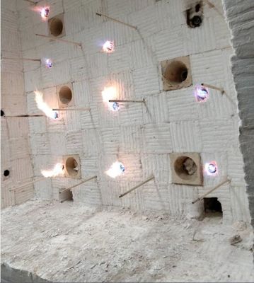 12. Brennende Düse: 8 Hochgeschwindigkeitsbrenner werden in den Ofenwänden auf beiden Seiten, 4 auf jeder Seite eingebettet. Stellt die Hitze zur Verfügung, die benötigt wird, um den Ofen oben zu erhitzen.