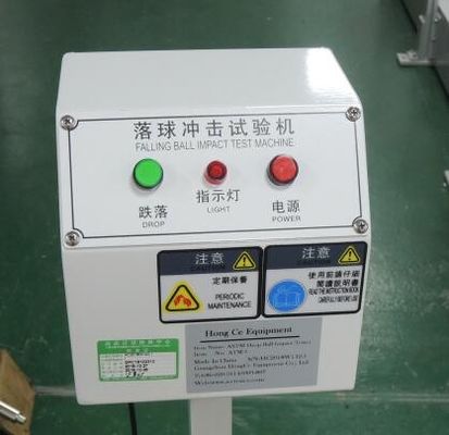 Stahlball-ist fallende Auswirkungs-Prüfvorrichtung, die Auswirkungsausdauer des spröden Materials wie Plastik, keramisch, acrylsauer und Glas zu prüfen. Zu Schlagversuch für Spielwaren durchführen, die das Gesicht bedecken (wie Maske). Willigen Sie mit ASTM F963 8.7.4, ISO 8124-1 5,14 ein, liefert Schiedsrichterballauswirkungsprüfmaschinen einen Standardstahlball, der durch magnetische Kraft adsorbiert wird, und als abgeschnitten, die Stromversorgung zum Magnetismus, der Stahlball freies Fallen von einer bestimmten Höhe, die das Exemplar geschlagen würde und dann sichtlich die Qualität nach Schaden betrachtet würde, den Grad seiner auswirkenden Ausdauer zu bestimmen. Das Gewicht und die Abwurfhöhe können entsprechend dem Material des Exemplars geändert werden