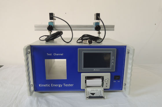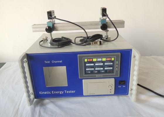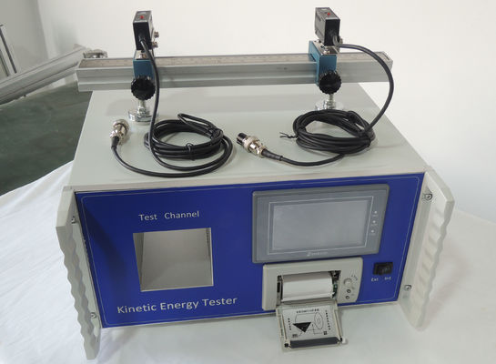 Um die kinetische Energie der Größenkatapulte von Spielwaren, ermitteln das Ausstoßen von Teilen der Prüfeinrichtung durch das Rohr zu bestimmen oder die externe Prüfung der Komponenten der zwei Sensoren die Ausstoßenspielzeugteile, die weg nach einer bestimmten Frist benutzt werden, es hat berechnet die Bewegung Energie. Die Hauptinstrumente benutzt für diese Testprodukteinführung der Babyspielzeug- oder -Kindsicherheit.