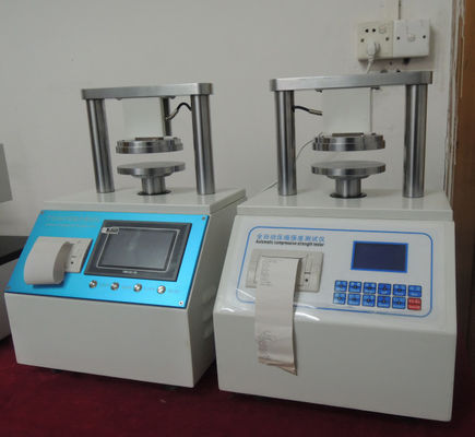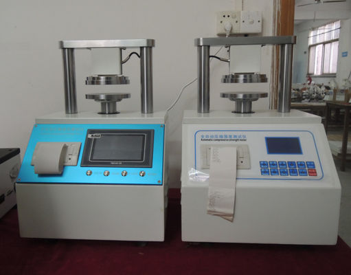 Für Papierverpackungsmaterialien wie Wellpappe, ist eine Vielzahl von Papierqualitätsprüfungen, nämlich Ringdruck (RCT), flacher Druck (FCT), Randdruck (ECT), Adhäsion (PAT) und allgemeine Kompression (CMT) Prüfung Versuchseinrichtungen, die mehrfache Funktionen kombiniert. Diese Maschine wird mit verschiedenen Befestigungszusätzen ausgerüstet, um die Ringdruckstärke des Rohpapiers, die flache/Randdruckstärke der Pappe und die Klebefestigkeit zu prüfen, damit die Papierproduktionsunternehmen die Produktionskosten steuern und die Produktqualität verbessern können.