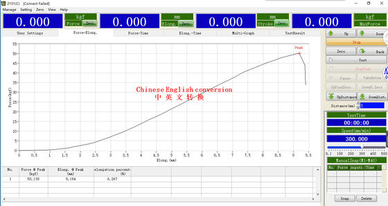 2. Standardnetzwerk-computer-Schnittstelle, mit spezieller Berufsmaß- und Steuer-Software, Realzeitanzeige der Kraftverschiebung, Kraft-male, Verschiebung-male, Belastungskurven, automatische Berechnung der maximalen Kraft, der Ertragkraft, der durchschnittlichen Kraft, der maximalen Deformation, der Streckgrenze, des Elastizitätsmoduls und anderer Parameter und der flexiblen Berichtsredigieren und -druckfunktionen. Der Bericht kann den Dehnfestigkeitswert (Mpa) anzeigen und drucken.