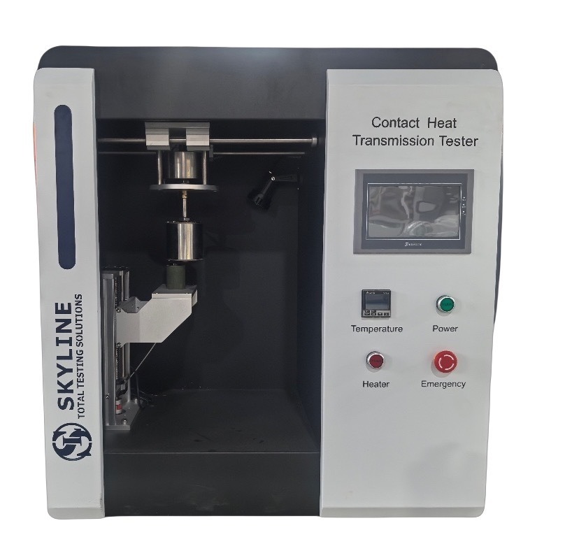 Das Kontaktwärmeübertragungs-Prüfgerät wurde professionell entwickelt, um die Kontaktwärmeübertragung von Schutzkleidung, Handschutz und den Bestandteilen zu bestimmen, die vor hohen Kontakttemperaturen schützen sollen. Das Prüfgerät besteht aus einem Heizkörper, einem Probenhaltegestell und einem Kalorimeter.