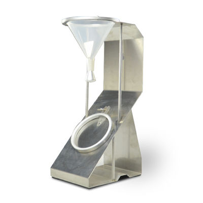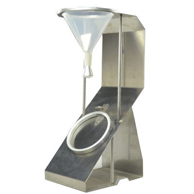 Zur Bestimmung der Oberflächenbefeuchtigungsfestigkeit von Geweben, bestehend aus einem Metallrahmen, mit dem durch eine Düse destilliertes Wasser auf eine Prüfprobe bei 45° und 150 mm unterhalb der Düse gesprüht werden kann.Das Erscheinungsbild des Exemplars wird mit einer optionale fotografische Skala verglichen..