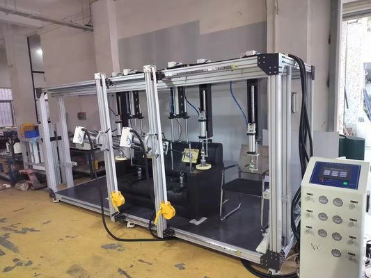 Dieser Prüfer simuliert die normalen Nutzungsbedingungen, um die Haltbarkeit des Sofas unter langfristiger Wiederholbarkeitsbelastung zu bestimmen.Das Prinzip besteht darin, die Festigkeit der Drei-Sofa-Konstruktion durch Anwendung von Belastungen auf Sitz- und Rückenlehne zu simulieren.- die Verwendung bestimmter Form- und Belastungsmodule mit spezifischer Form bzw. Häufigkeit, die sich wiederholen, wie Belastungssitze, Rückenlehnen und Armlehnen, wobei diese drei Prüfungen zusammen oder unabhängig voneinander durchgeführt werden können,Auch die Prüfposition ist einstellbar..
