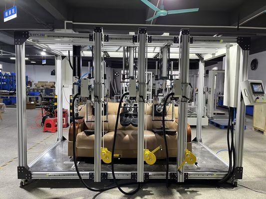 Dieser Prüfer simuliert die normalen Nutzungsbedingungen, um die Haltbarkeit des Sofas unter langfristiger Wiederholbarkeitsbelastung zu bestimmen.Das Prinzip besteht darin, die Festigkeit der Drei-Sofa-Konstruktion durch Anwendung von Belastungen auf Sitz- und Rückenlehne zu simulieren.- die Verwendung bestimmter Form- und Belastungsmodule mit spezifischer Form bzw. Häufigkeit, die sich wiederholen, wie Belastungssitze, Rückenlehnen und Armlehnen, wobei diese drei Prüfungen zusammen oder unabhängig voneinander durchgeführt werden können,Auch die Prüfposition ist einstellbar..