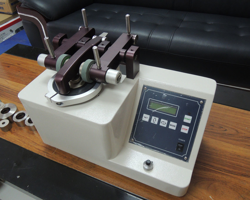 Diese Prüfvorrichtung traf zu, um den Test von haltbarem in des Sperrholzes, Glas- und durchzuführen dem Naturkautschuk der Haut, des Leders, des Stoffes, der Farbe, des Papiers, des Bodenbelags. Die Methode benutzt das Standardmesser, welches das Exemplar schneidet, und unter Verwendung der regulierten Modelle der Schleifscheibe mit dem dann abrased Ladegewicht, nachdem die Rotation, um eine bestimmte Zahl zu erreichen, die Zustand des Exemplars beobachten oder das Gewicht mit dem vorhergehenden Material, modelliert das für die Wahl vergleichen der Schleifscheibe entfernt zu werden Exemplar: H18, H22, CS17, S32, S33.