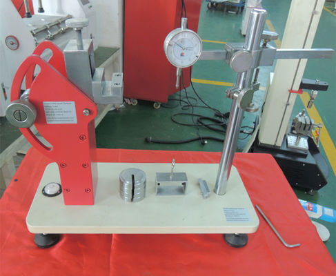 Lederne Steifheitsprüfvorrichtungsmaschine wird benutzt, um die Steifheit in der Längsrichtung von den Stahlschäften zu messen, die für die Verstärkung der Taillenregion der Schuhe benutzt werden, wird der Schaft an seinem Kanten festgeklemmt und Biegung als Kragträger durch Massen fügte seinem Vorwärts hinzu, dann berechnet die Biegesteifigkeit des Schaftes.