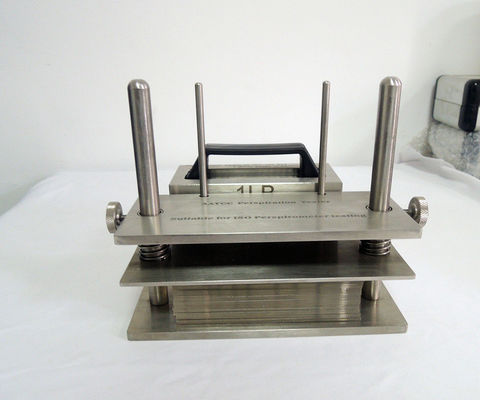 Schweiß-Prüfvorrichtung, zum des Farbechtheitstests, um, des Meerwassers, der Schweißfestigkeit in den Geweben und der Sublimation zu bestimmen während der Lagerung zu wässern. Schweißprüfvorrichtung besteht aus Rahmen des Edelstahls 2 mit 21 Acryltrennzeichenplatten, um 20 Proben zu halten. So können die beide ISO-/AATCCprüfmethoden in einemmal erfolgt sein. 20 Plastikbecken werden für Vorbehandlung von Proben ausgerüstet.