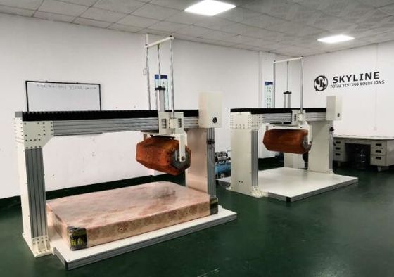 Die Rollator-Art Matratzenhaltbarkeitsprüfvorrichtung bestimmt die Qualität der Unterstützung der Matratzen- und Matratzenfedereinheit nach wiederholt Auswirkungen und der zyklischen Bewegung, die auf die Oberfläche, unter Verwendung des Zylinders oder des Hexagons angewendet wird, um den Körper von menschlichem, zu simulieren auf der Matratze Endlosrolle.