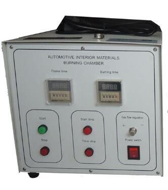 Horizontale Entflammbarkeits-Prüfvorrichtung, den vergleichbaren Gemeinkostenaufwand einer Unternehmung bestimmen und Widerstand von Geweben brennen, besonders die für Automobilinnengebrauch. Horizontale Entflammbarkeitsprüfvorrichtung ist sicher und einfach enthält zu benützen, freies Edelstahlkabinett des Entwurfs mit Beobachtungsfenster, Beispielhalter und Tür angebrachtem Brenner.